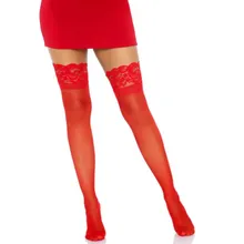 Leg Avenue – Transparente Halterlose Strümpfe – Rot