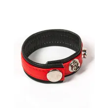 Black Label 3 Snap Leather Cock Ring: Penis- und Hodenriemen, schwarz/rot