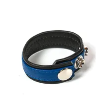 Black Label 3 Snap Leather Cock Ring: Penis- und Hodenriemen, schwarz/blau