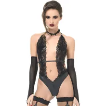 Patrice Catanzaro Camille: Wetlook-Spitzen-Stringbody, schwarz (L)